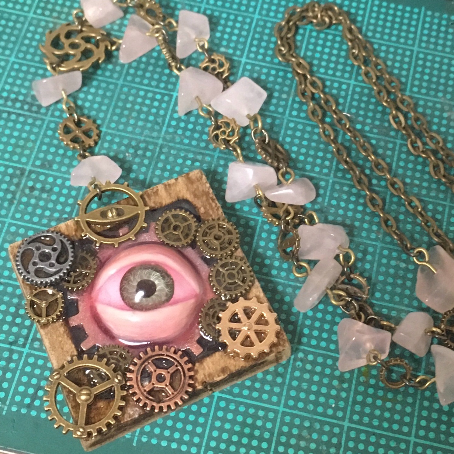 今まで作ったことのないパターンを試しています。大きいサイズの枠じゃないとできないデザインです。面積が大きくないと義眼パーツを2つも入れられないので。