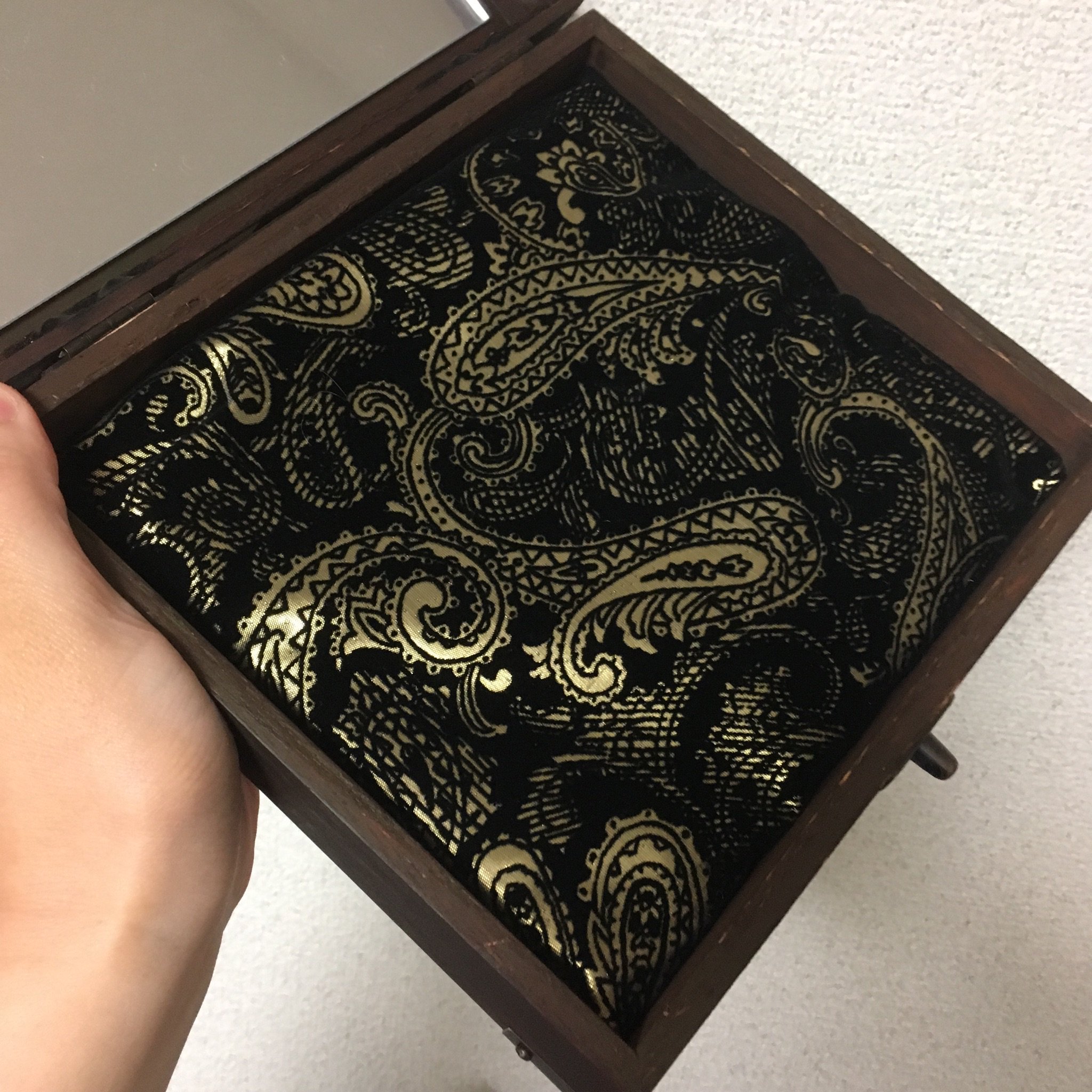 次に、箱の底に綿を敷き、さらに布を貼ります。綿が思いのほか厚すぎて容量が減ってしまいましたが、まあ薄手のものを仕舞う箱ということで…