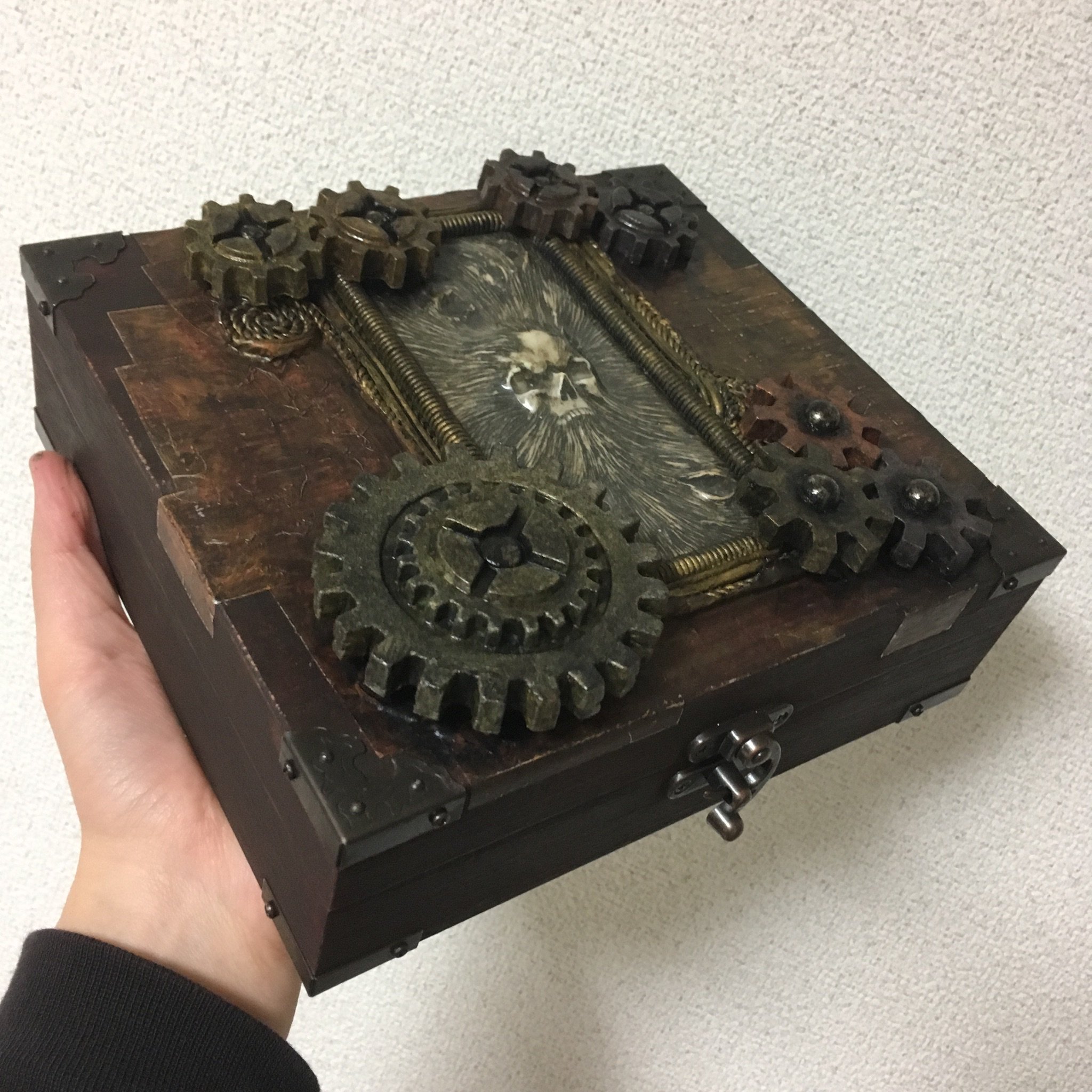4か月以上製作途中で放置していたスチームパンクな箱の製作に再び着手しました。とりあえず今日は歯車に鋲を付けて終了。