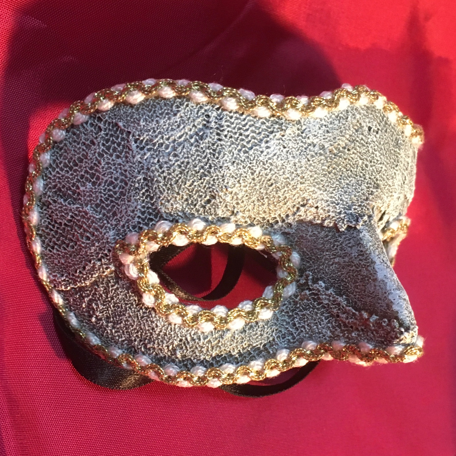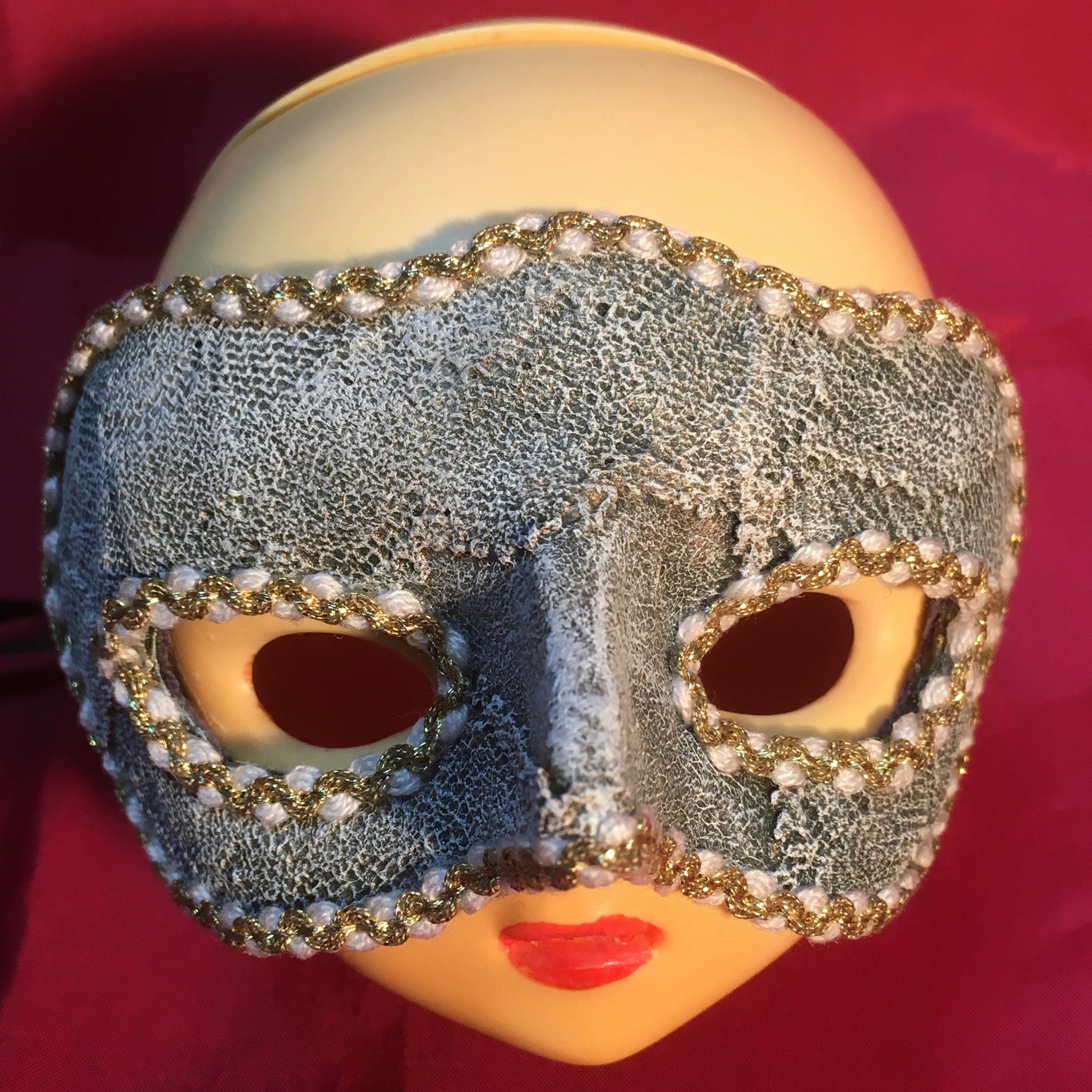 基本的には所謂マスケラと呼ばれるタイプの仮面なんですが、ちょっと鼻の部分をとがらせた造型にしてみました。