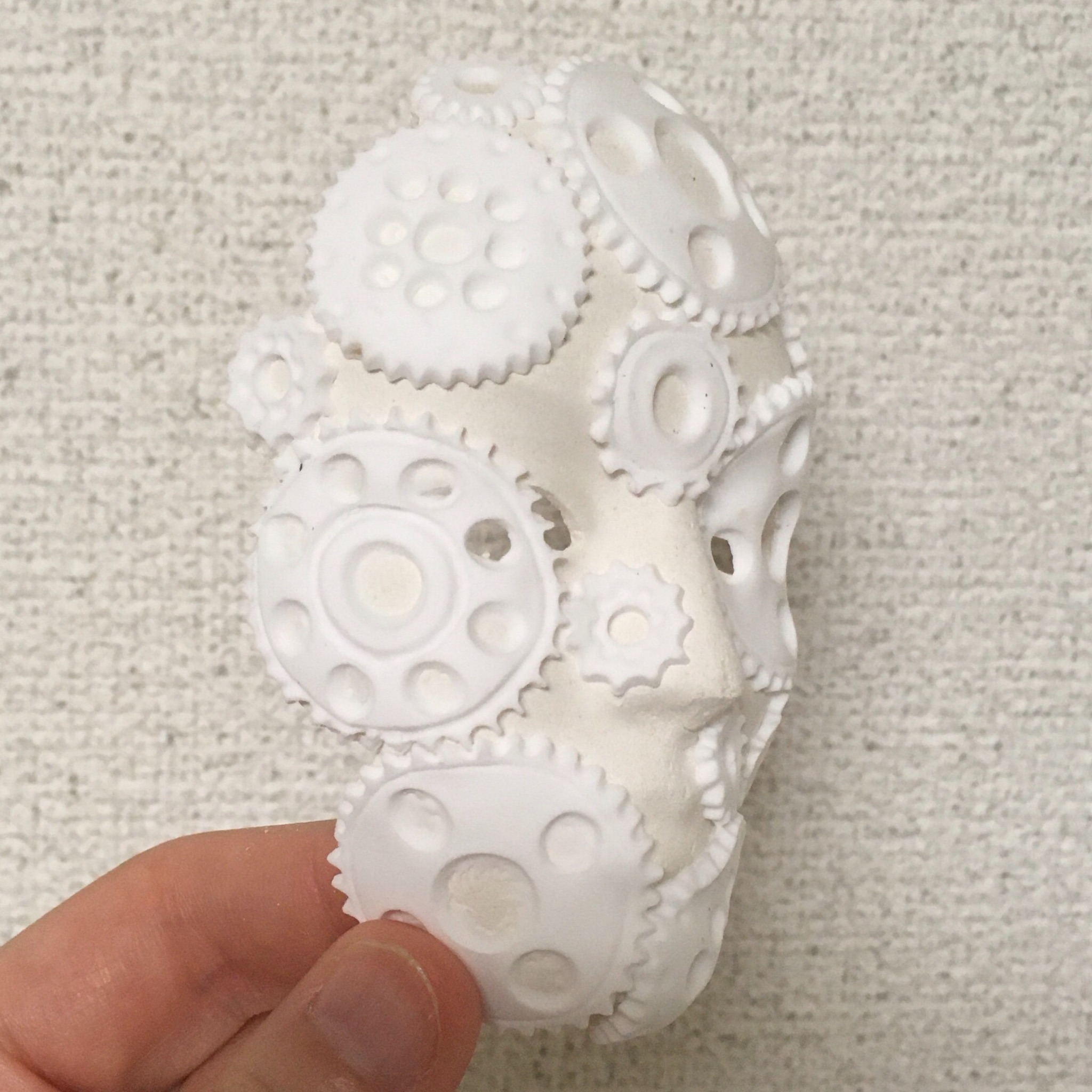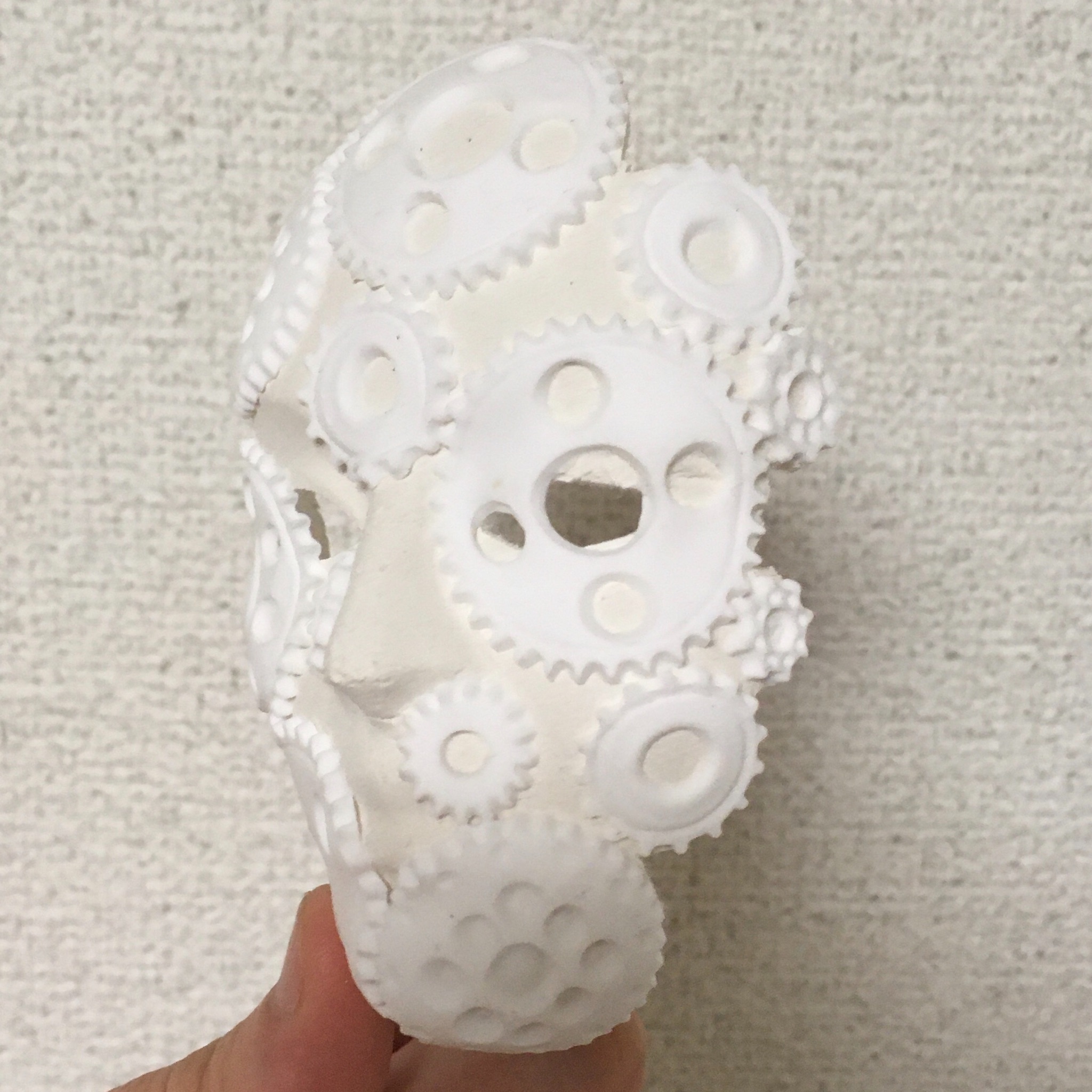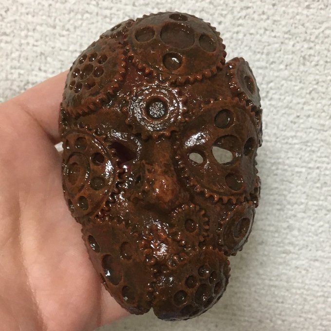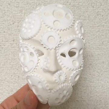 「仮面に歯車が付いている」のではなく、「歯車の集合体が仮面になった」という感じの仮面を目指しています。