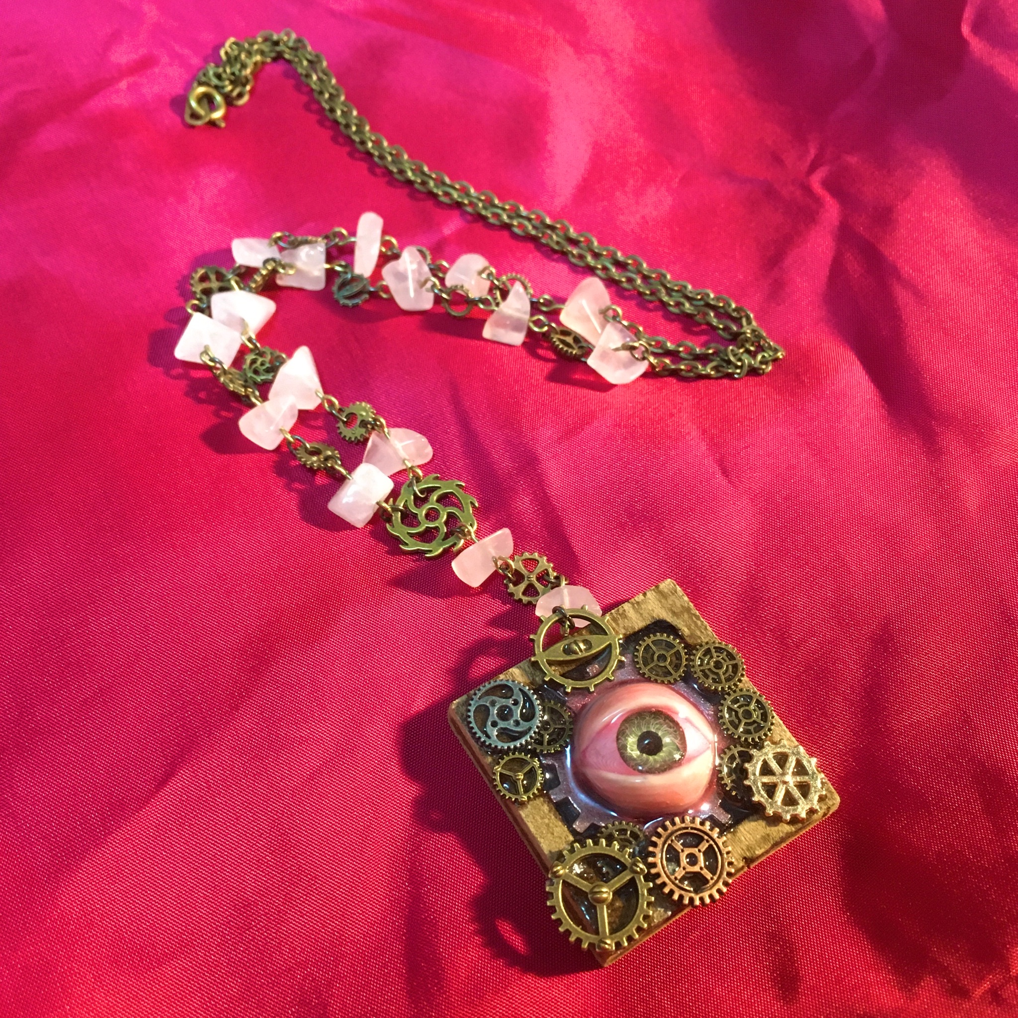 minne にて先日より製作していたスチームパンクテイストのアクセサリーの最新作「目と歯車のネックレス」の販売を開始しました。