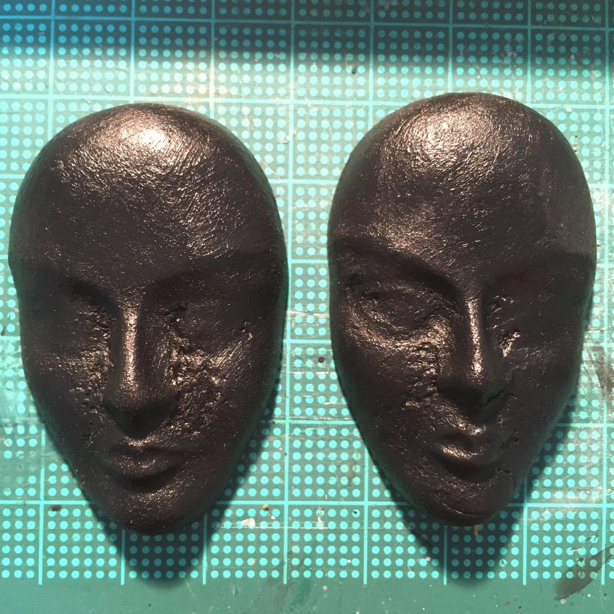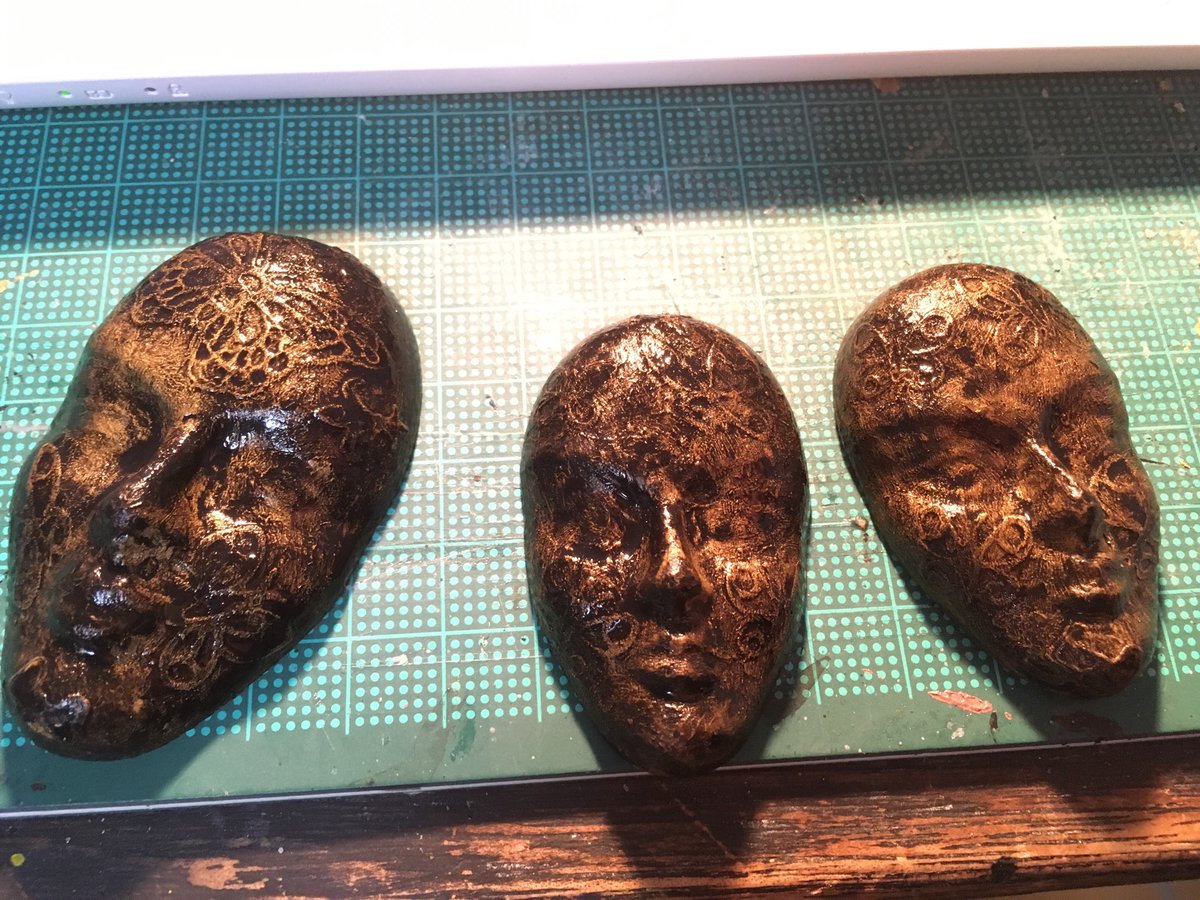 昨日ウェットブラシ塗装していたこれら、さらにゴールドでドライブラシ塗装もしてペイント完了!やっぱり陰影を付けるなら合わせ技!