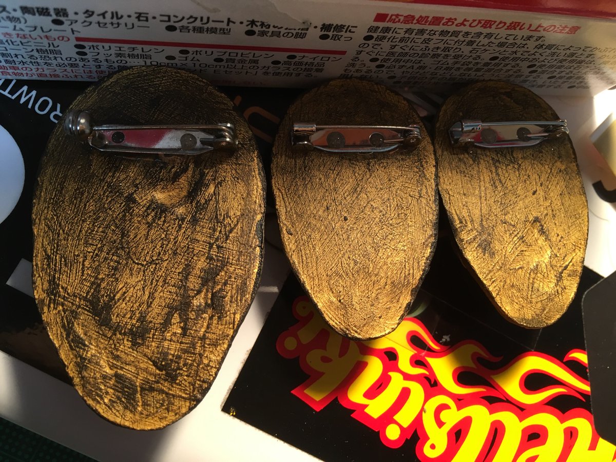 ということで新作のブローチが完成しました!お値段一個500円で、まずは一個を東京・西荻窪のニヒル牛に納品し、その後でもう一個をminneで通販し、最後の一個はイベント出展で直販する予定です。イベントで売るのは左側のちょっと大きめのサイズのにしようかな。