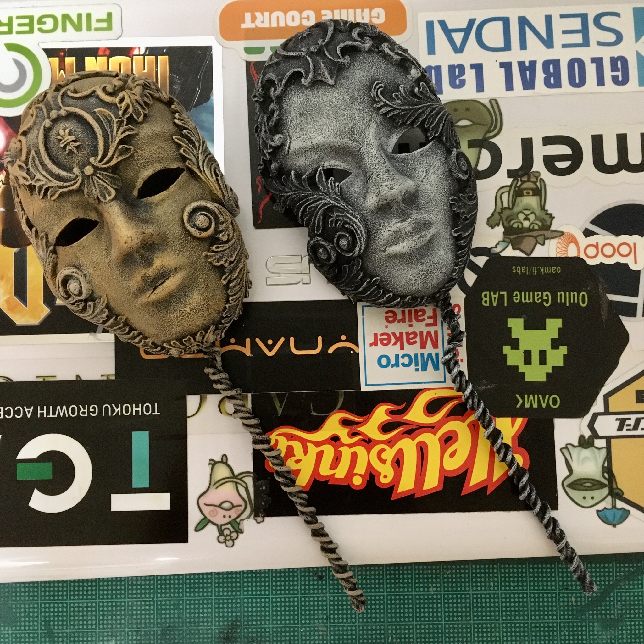 基本的には所謂マスケラと呼ばれるタイプの仮面なんですが、ちょっと鼻の部分をとがらせた造型にしてみました。