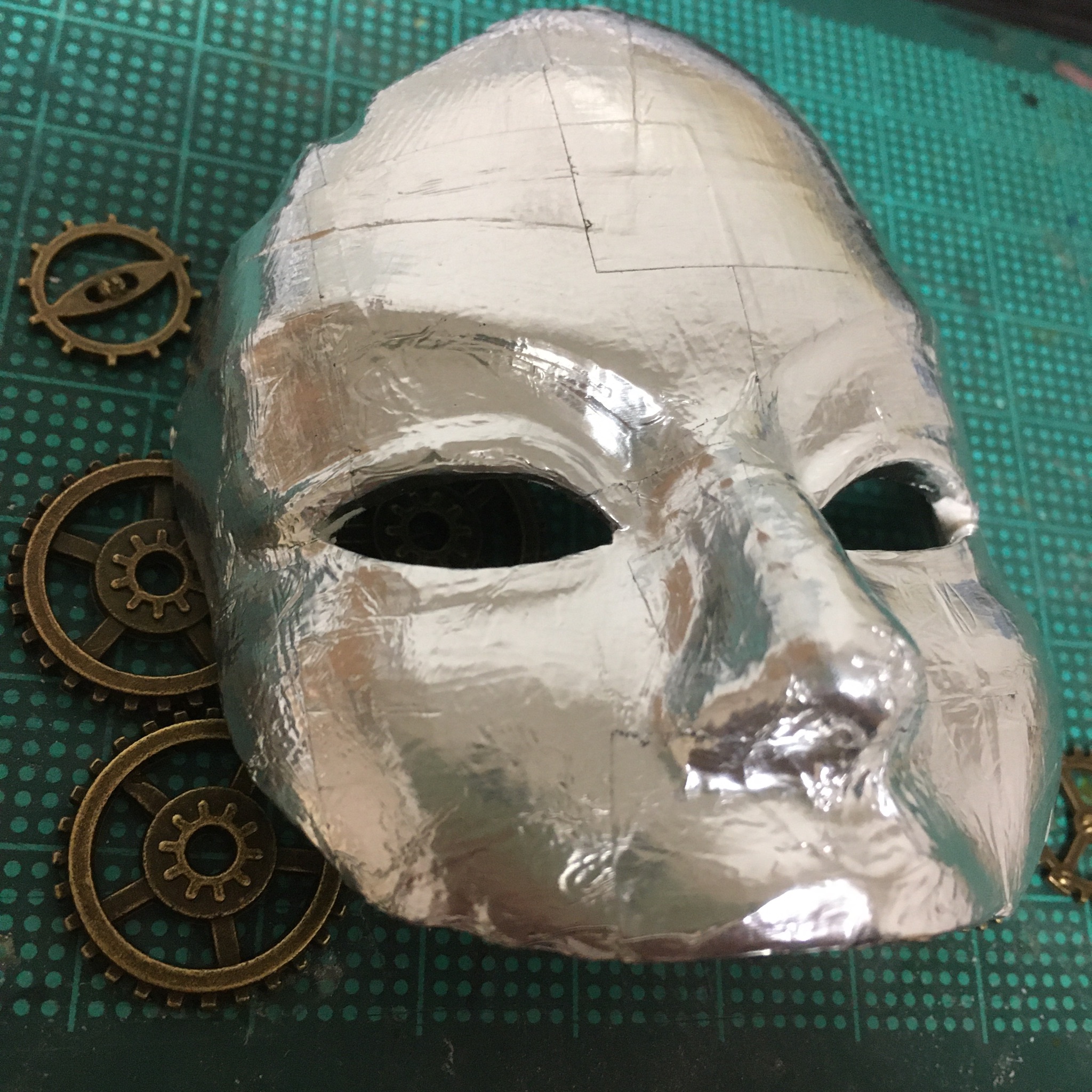 新しい試みとして、アルミテープを使ったドール用仮面を作っています。手っ取り早く金属の質感が出せて便利ですね。