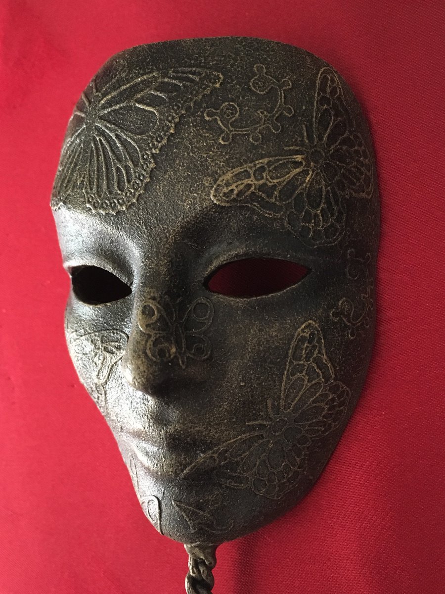 こっちはフルフェイスの持ち手付きのドール用仮面です。顎のところに持ち手を付けているのが特徴。フルフェイスは本体が重いため左右どちらかよりも中央に持ち手が付いている方が安定するんですよね。色はゴールド。撮影用小道具にどうぞ。お値段は2300円。