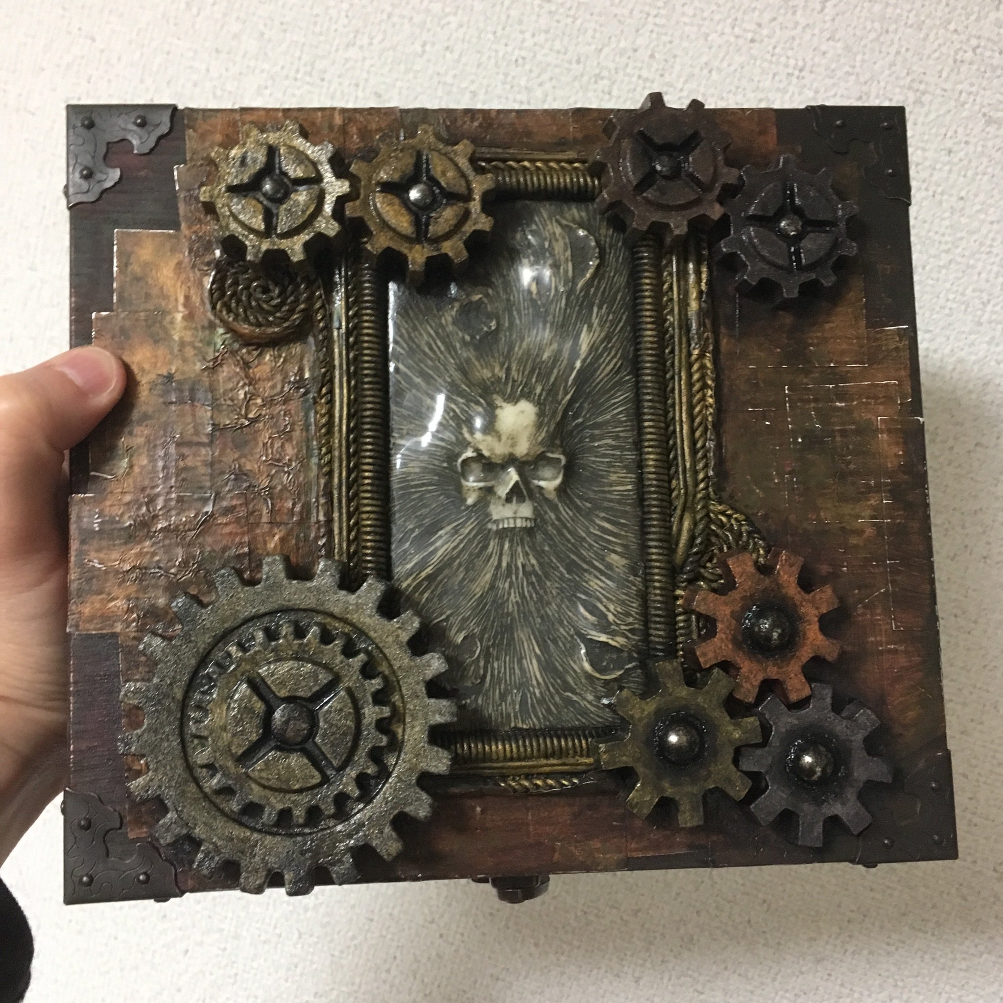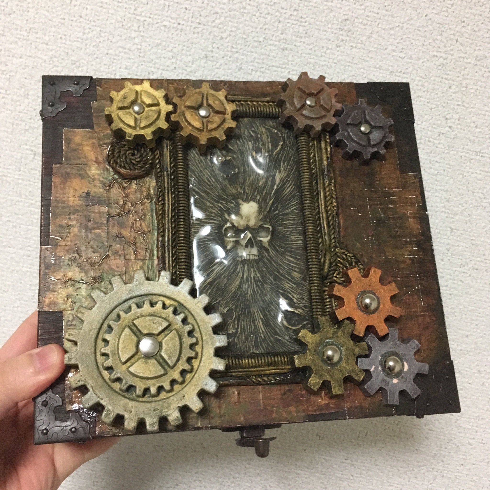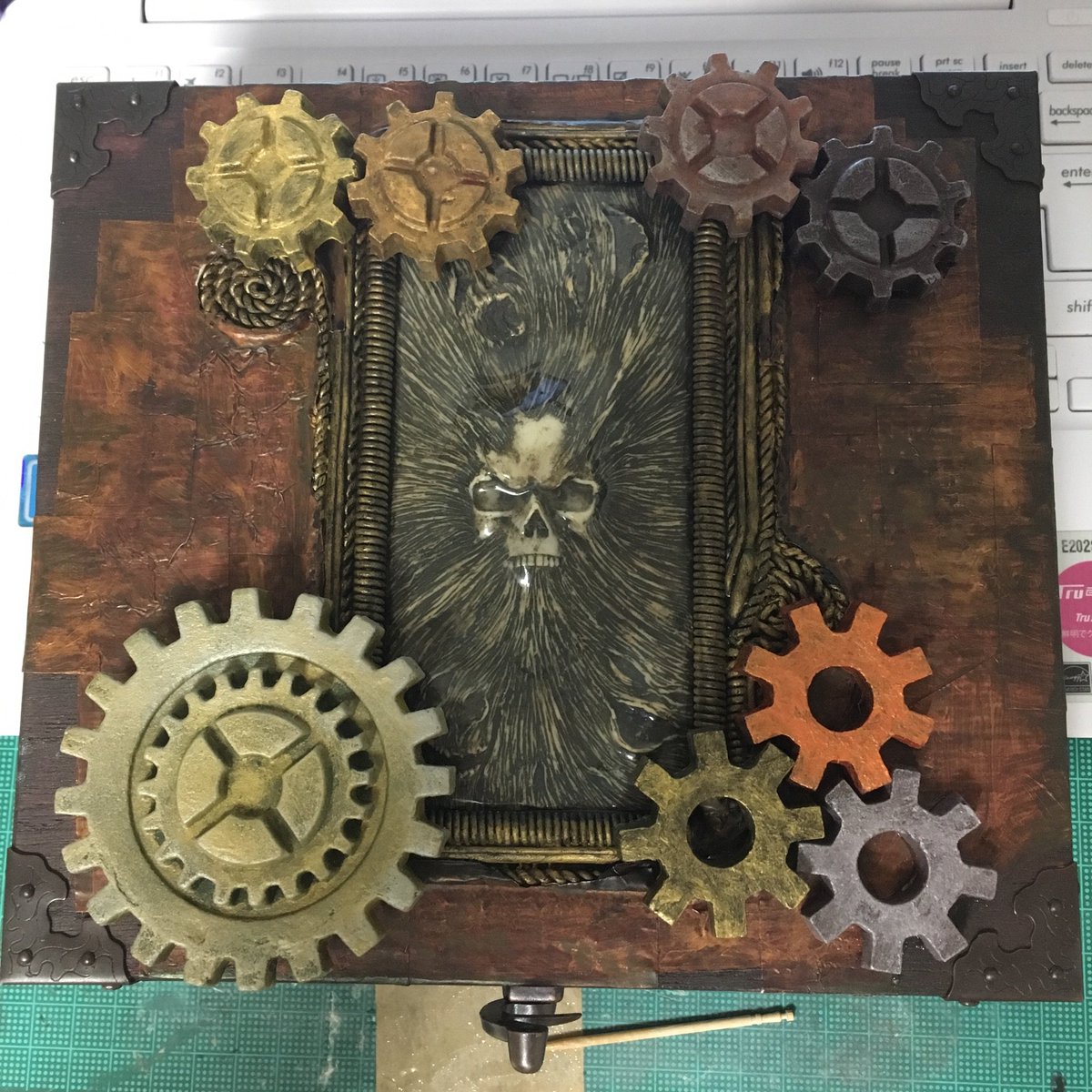 4か月以上製作途中で放置していたスチームパンクな箱の製作に再び着手しました。とりあえず今日は歯車に鋲を付けて終了。
