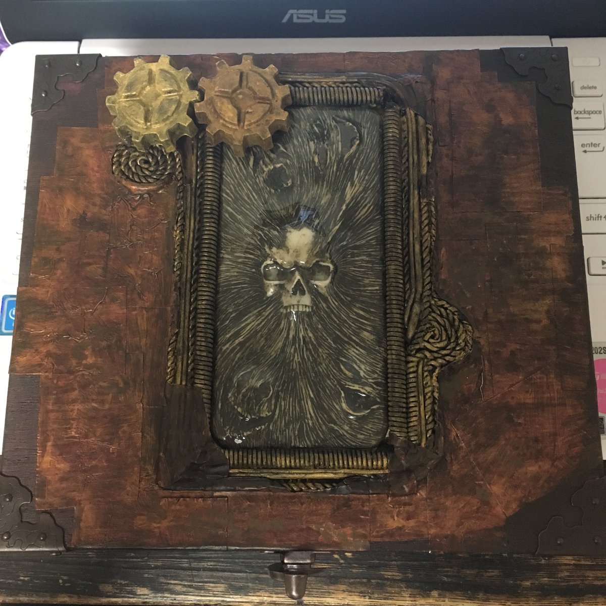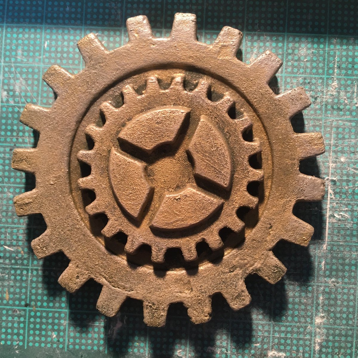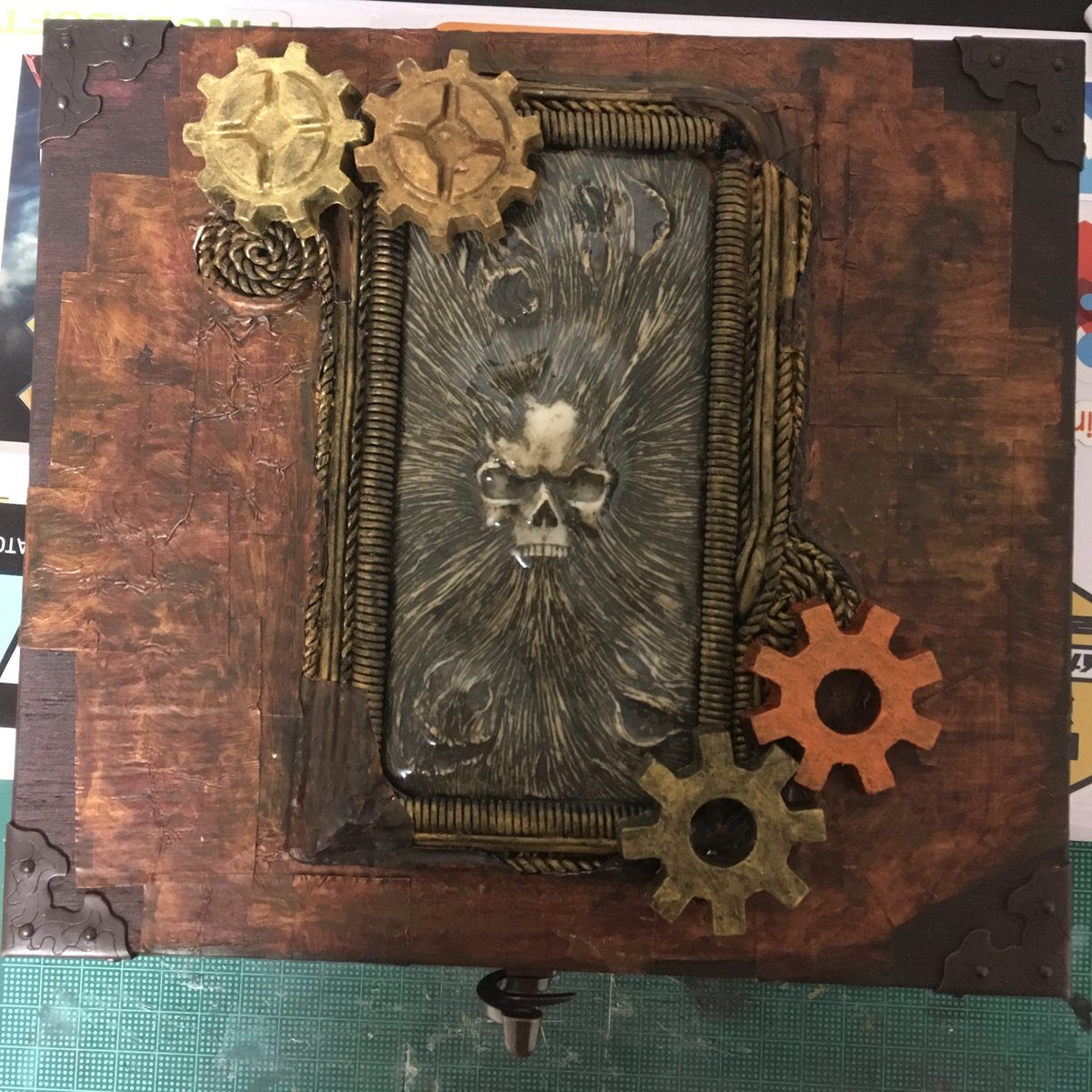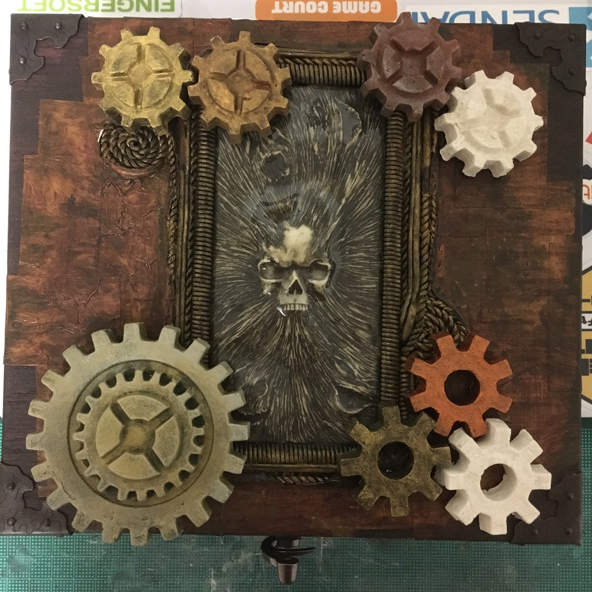4か月以上製作途中で放置していたスチームパンクな箱の製作に再び着手しました。とりあえず今日は歯車に鋲を付けて終了。