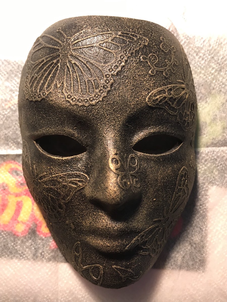 とりあえずこれは紐を付けてオーナメントにする予定ですが、もっと薄く粘土を押し付け、頭に装着する用、もしくは持ち手を付けて手に持つタイプのドール用仮面に仕立てても良いかもしれません。